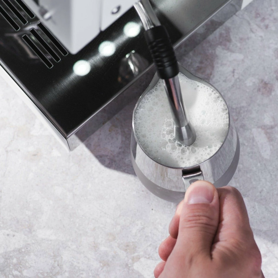 - Electronic steam control with an advanced no-burn steam wand for safety.